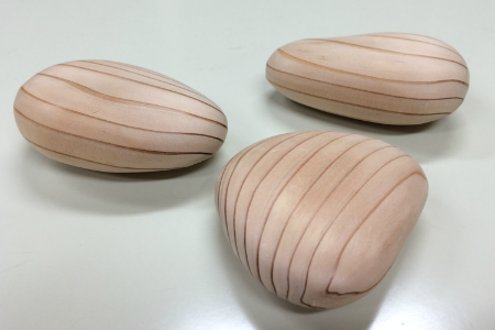 知り合いの家具屋さんに「杉の石ころ」のようなものを作っていただきました。弊社では、九州で育った木を使った”すまい”づくりをお客様にお薦めしているのですが、そのことを言葉でお伝えすることって、とても難しいなと感じています。そこで、このおもちゃをつくることにしました。