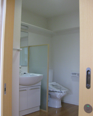 - 3点式のユニットバス(トイレ、洗面、浴室が一体になったユニットバス)からトイレ・洗面と浴室を分離すること。