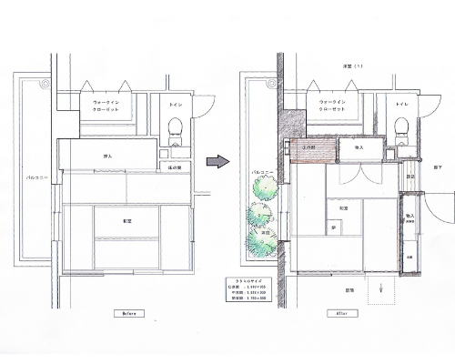 6帖から4畳半にリノベーション。畳のサイズを大きくしました。