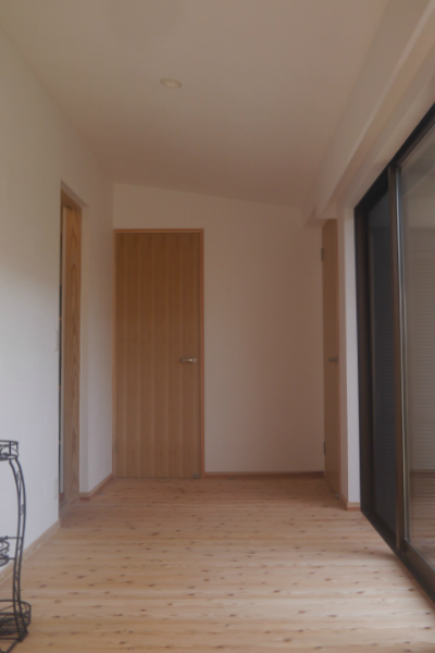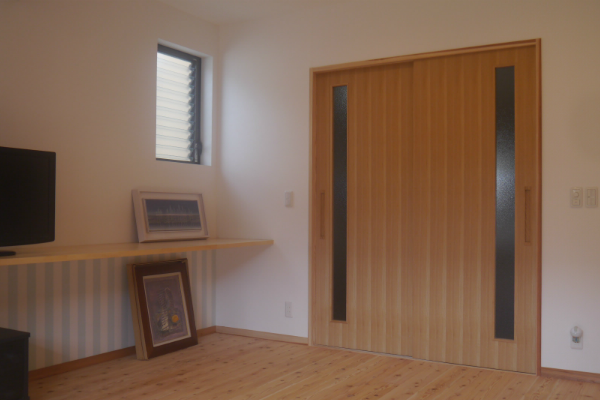 床は、低温乾燥した杉材30mmを。建具も突板で大川の建具屋さんにつくっていただきました。