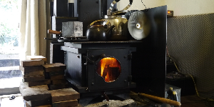 右の写真は、マキストーブです。暖かくなることはもちろんですが、ヤカンでお湯を沸かせたり、鍋で調理することもできる優れものです。今号では、『木質バイオマス』に関して考えてみたいと思います。